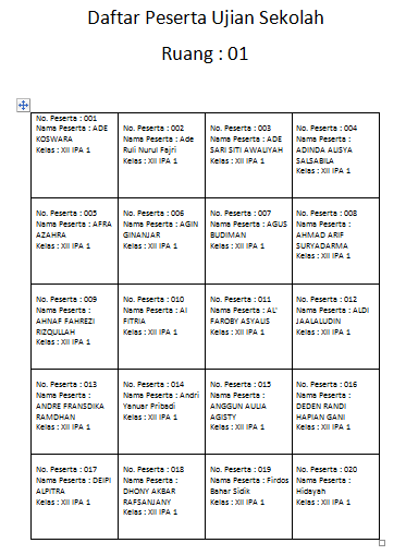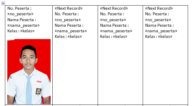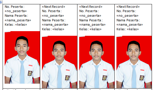 Kemudian tekan alt + f9 dan hasilnya akan tampak seperti gambar di bawah. Foto siswa semuanya masih sama. Belum berubah sesuai dengan nomor peserta