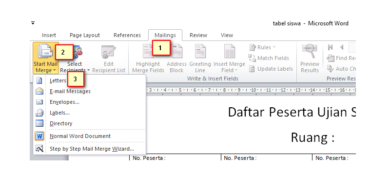 Sing : Ujian sekolah telah tiba… ujian sekolah telah tiba (adaptasi lagu anak: ‘Libur Telah Tiba by Tasya’ hehehe…). Dan seperti biasa tugas membuat administrasi ujian pasti numpuk. Ya beginilah nasib tukang bersih-bersih di sekolah. hehehe… Kali ini admin disuruh membuat daftar siswa per ruangan dilengkapi foto yang nantinya daftar siswa tersebut di tempel di pintu kelas masing-masing ruangan. Admin coba pakai teknik sederhana saja. Yaitu menggunakan mail merge kolaborasi dengan microsoft excel. Ok, kita langsung saja mempersiapkan bahan-bahannya: