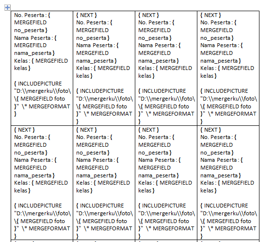 Keenambelas, tekan ctrl + A lalu tekan F9. Tarraaaa…. hasilnya akan tampak seperti gambar di bawah. Foto berubah sesuai dengan nomor peserta