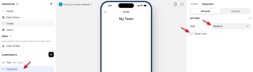 Keempat, tambahkan komponen separator untuk memberi jarak antara komponen sebelum dan sesudah komponen lainnya
