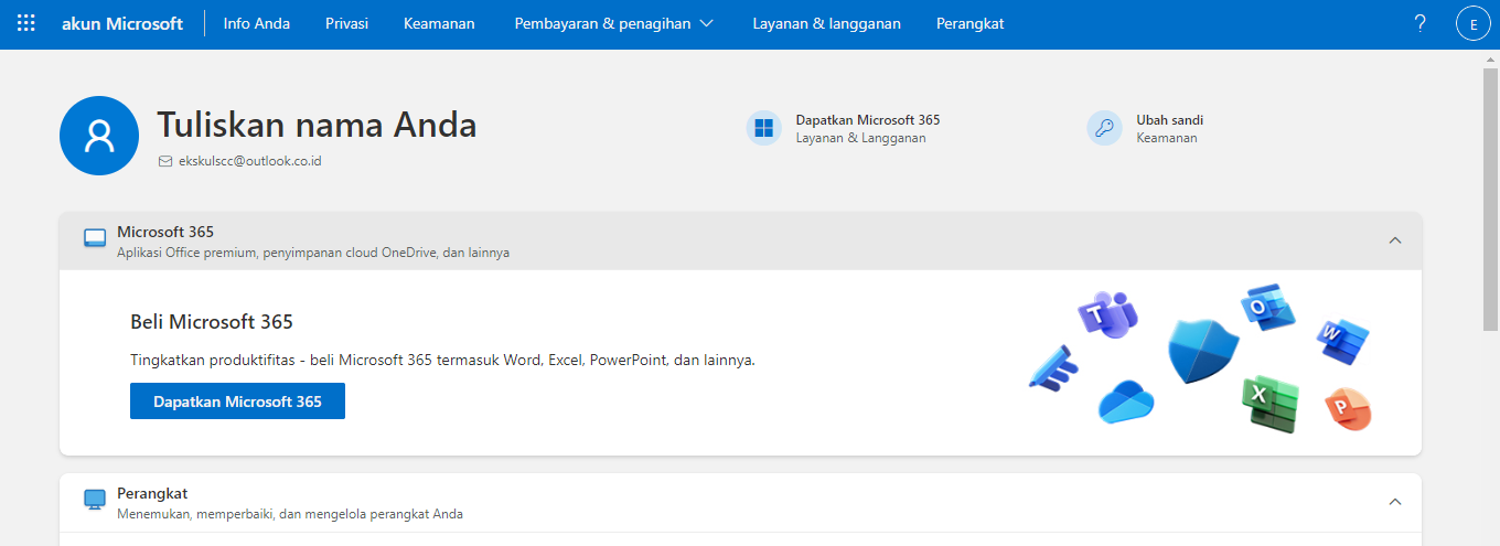 Jika tampilannya sudah seperti ini artinya proses pembuatan akun di microsoft sudah berhasil