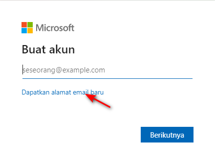 Berikutnya klik Dapatkan Alamat Email Baru