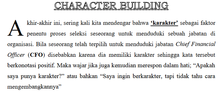 Sebagai bahan latihan cobalah buat sebuah paragrap dengan menyisipkan efek drop cap seperti soal latihan di bawah ini.