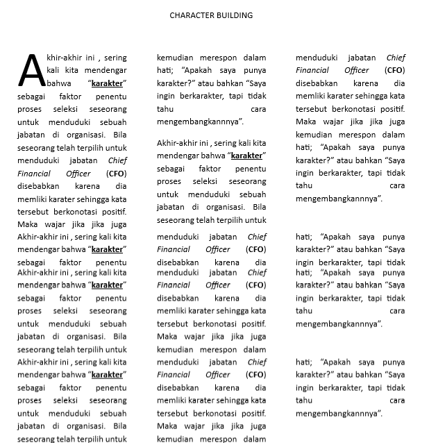 - Menggunakan kolom dapat memberikan tampilan yang lebih terstruktur dan profesional pada dokumen, mirip dengan tata letak yang digunakan dalam publikasi cetak.