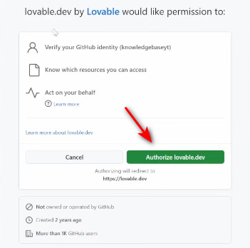 Langkah selanjutnya adalah kita mendownload source code yang ada di lovable melalui github. Silahkan login kan akun github anda. Kemudian buka aplikasi yang akan di download source codenya.