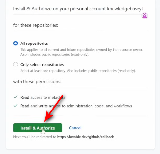 - Pilih All repositoriez dan Klik Install & Authorize.