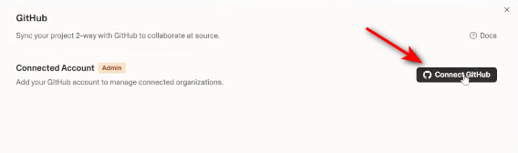 - Klik ikon github. Kemudian klik tombol Connect Github.