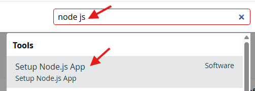 - Berikutnya kita setting nodejs nya pada cpanel. Silahkan ketikkan node js pada kotak pencarian lalu pilih Setup Node.js App