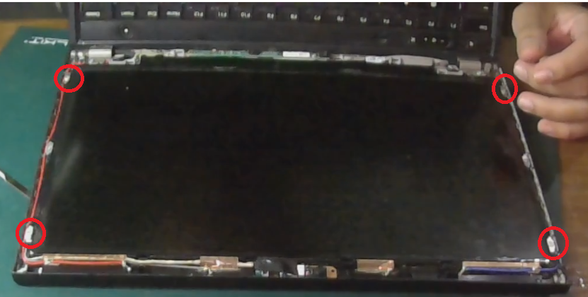 Yang harus diperhatikan ketika mengganti layar lcd lenovo thinkpad x230 adalah pastikan baut-baut pengunci pada sisi layar sudah buka. Perhatikan gambar berikut yang diberi tanda lingkaran merah.